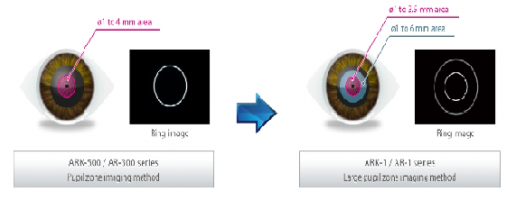 Các phương pháp tạo vùng quan sát lớn cho phép đo khúc xạ diện rộng của đường kính lên tới 6mm và có thể chỉ ra sự khác biệt giữa khu vực khúc xạ diện rộng và khúc xạ khu vực trung tâm lên đến 3,5 mm đường kính.